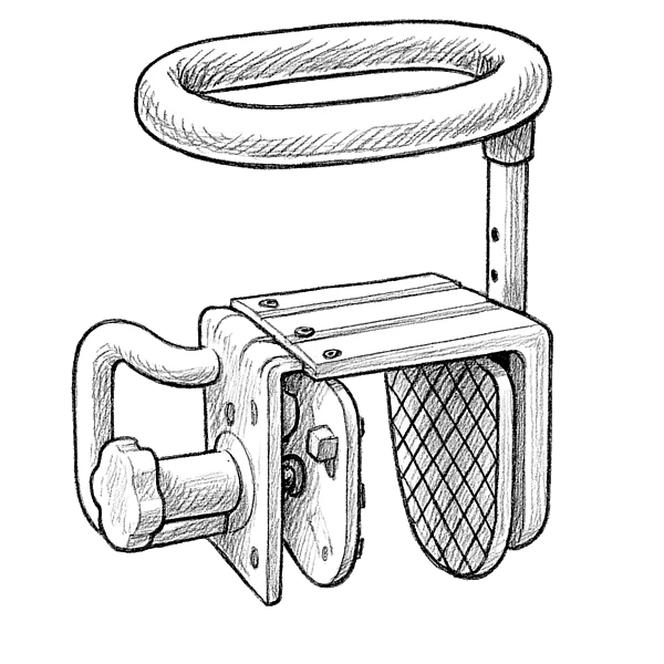 Die Stange mit mehreren schwenkbaren Griffen hat eine Länge von bis zu drei Metern und lässt sich zwischen Boden und Decke einspannen.